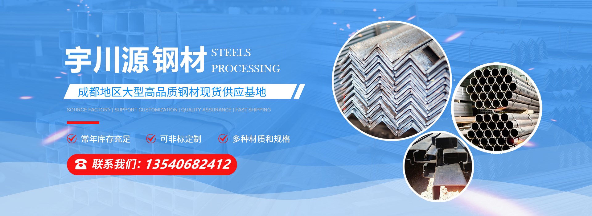 四川宇川源鋼材有限公司是一家專業從事鋼材貿易、加工、配送一體化的大型鋼鐵企業。主要經營:工字鋼10-63#、角鋼30-200#、槽鋼5-40#、焊管DN15-300、鍍鋅管DN15-300、H型鋼100-900#、螺旋管Φ2...